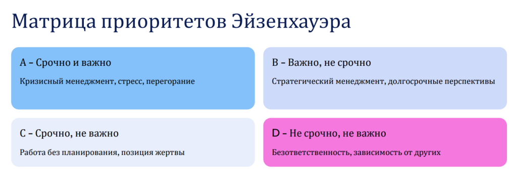 Но настоящая эффективность рождается во втором — там, где важно, но не срочно.Это пространство для стратегических решений, развития, системных изменений. Попасть туда можно только одним способом: перестать реагировать и начать планировать.